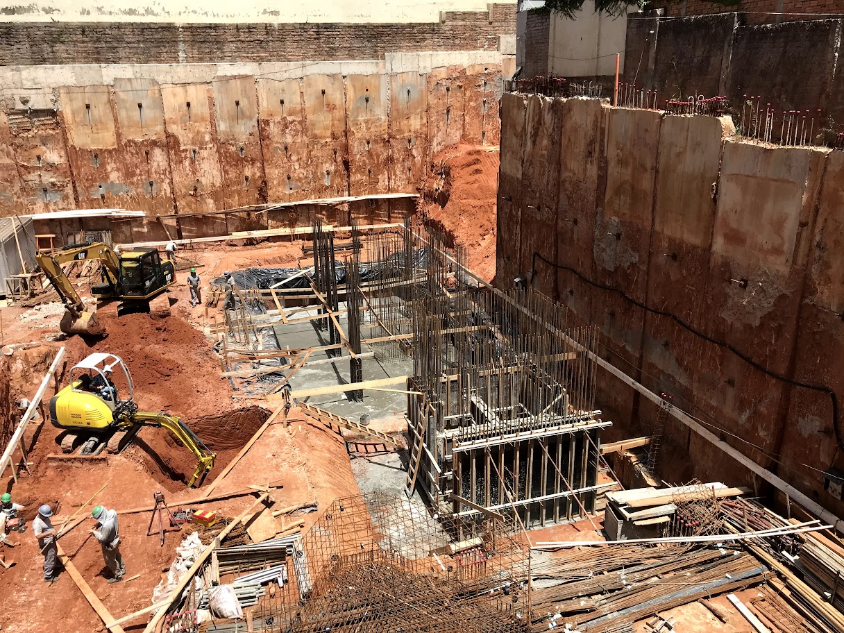 Estrutura de concreto armado com fck 50 MPa até o piso do 12º Pav e fck 40 MPa acima deste nível.